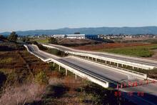 Structural failure of twin bridges carrying Highway 1 across Struve Slough near Watsonville.