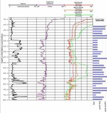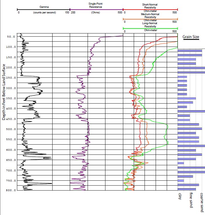 Suite of geophysical logs and grain size distribution Long Island, NY