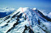 Summit of Mount Rainier viewed toward the southwest. The dashed red lines trace the 5,600 year old Osceola collapse crater now mostly filled in by lava flows.