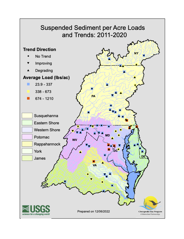 Suspended Sediment per Acre Loads and Trends in the Chesapeake Bay Watershed from 2011 to 2020