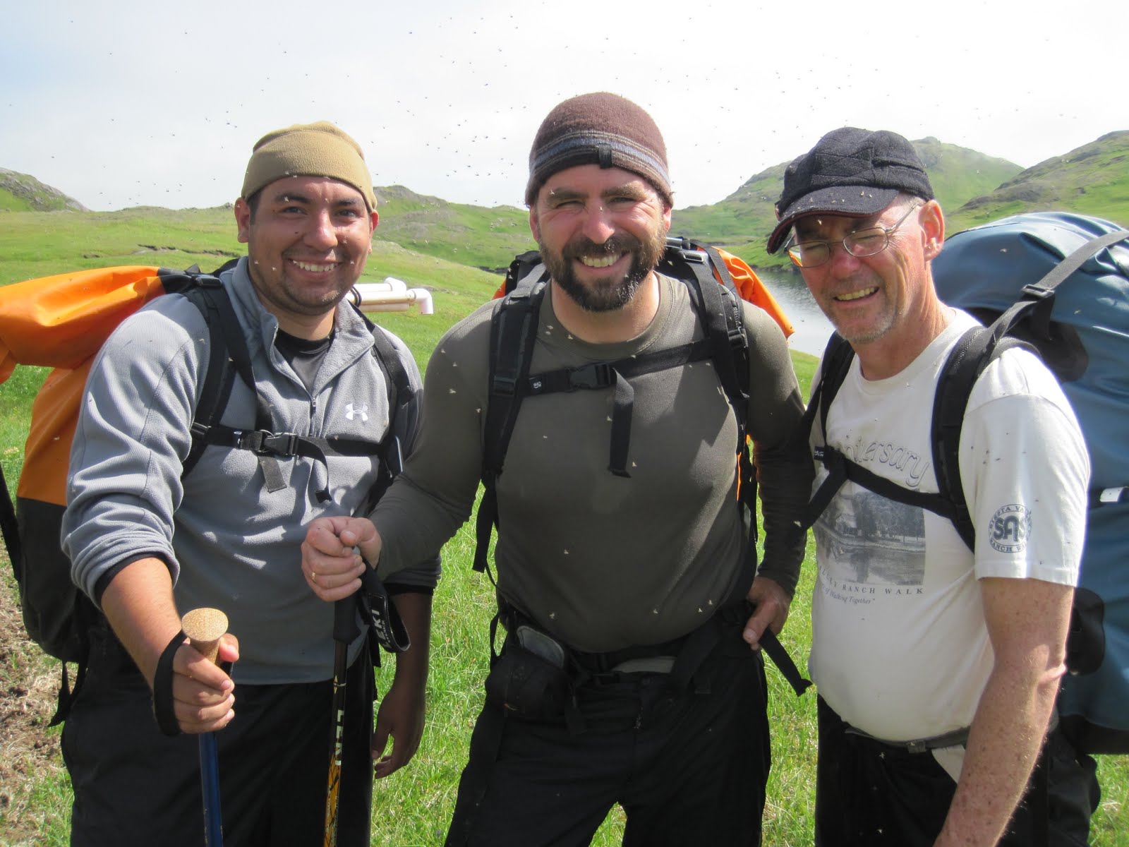 Team of researchers ready for field work on non-native caribou, Adak Island, AK.