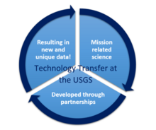 This image shows the cycle of technology transfer. Ideas related to mission relevant science are developed through partnerships which results in new and unique data.