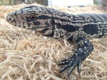 Young black and white tegu that was kept as a pet.