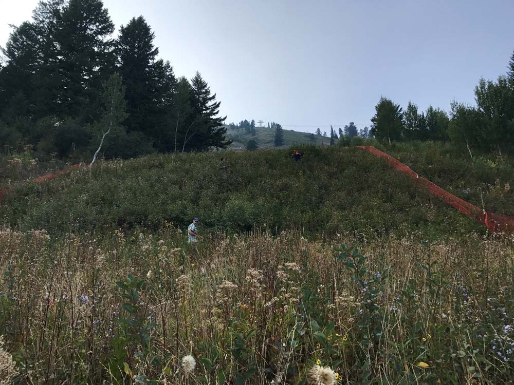 Rich Briggs, Ryan Gold, and Chris DuRoss flagging the boundary of the area to be trenched. Try to find Ryan - he's camouflaged!