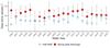 Time series data of mean calendar day whisker plot versus water year from 2000 to 2020