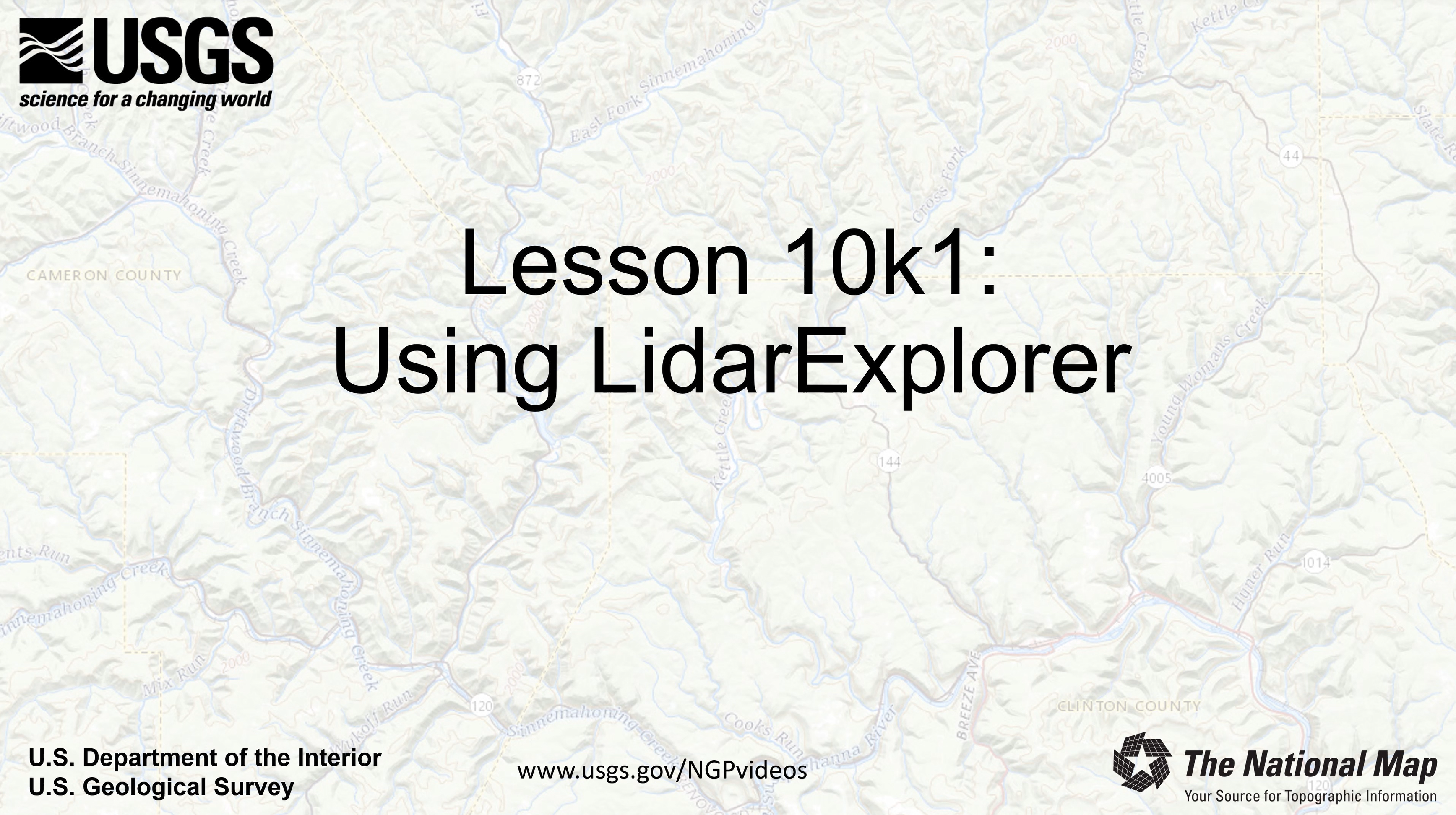 Screenshot showing title card of The National Map training video: Lesson 10k1: Using LidarExplorer