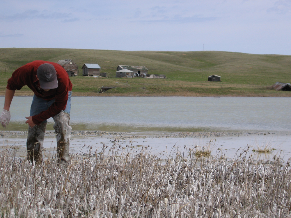 Todd Preston, USGS, sampling wetland.