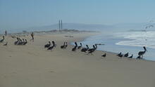 A USGS contractor gathers topographic data by walking beach transects northwest of Moss Landing to help researchers understand how Monterey Bay will respond to changing environmental conditions.