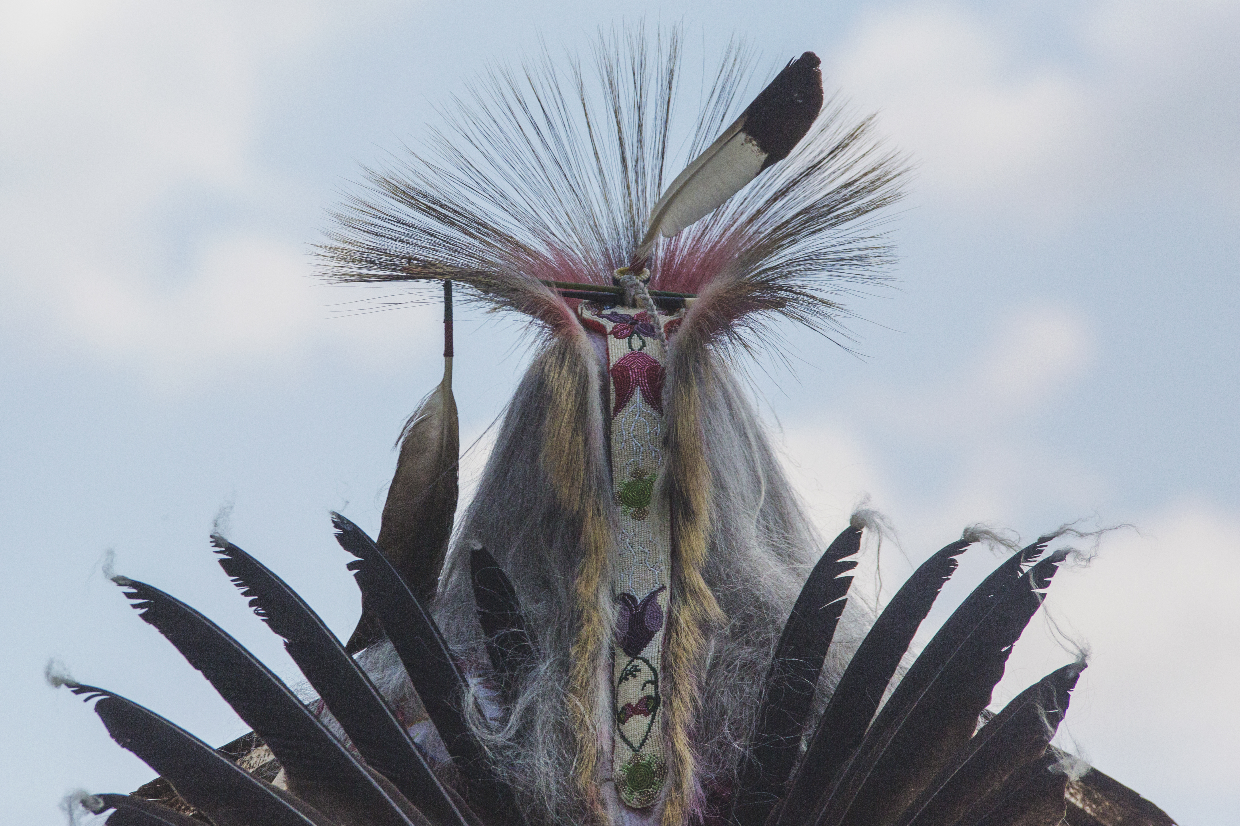 Traditional regalia bustle worn by Bob Moody of the Pokagon Band of Potawatomi Indians. Photograph by Bo Apitz, Citizen Potawatomi Nation.