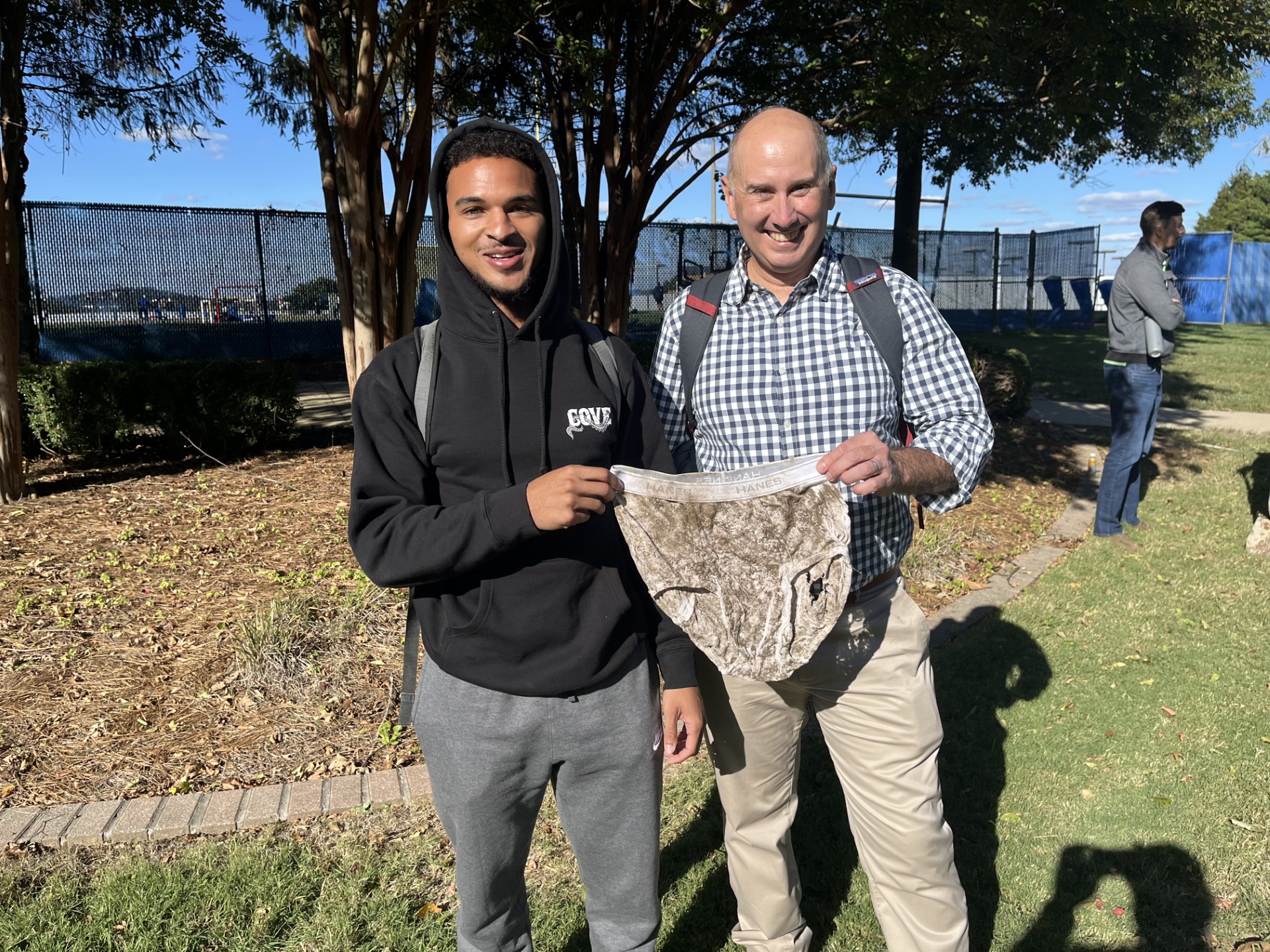 On October 16 and 17, Ben Gutierrez visited Tennessee State University (TSU) to give guest lecture in Environmental Science and Water Resource classes taught by Tom Byl of the USGS Lower Mississippi Gulf Water Science Center. The visit was a follow up to a visit last February where Ben talked about the work that USGS does to understand coastal hazards and to develop and deliver scientifically based information that can be used by coastal managers. After speaking to the Environmental Science class on the first day of his visit, Ben Gutierrez accompanied Tom Byl’s students in a short field exercise. At the beginning of the semester, the students had buried pairs of new cotton underwear in eight locations on the TSU campus. After six weeks the students dug up each pair and attempted to identify what may have lead to the differing rates of decomposition among the sites.