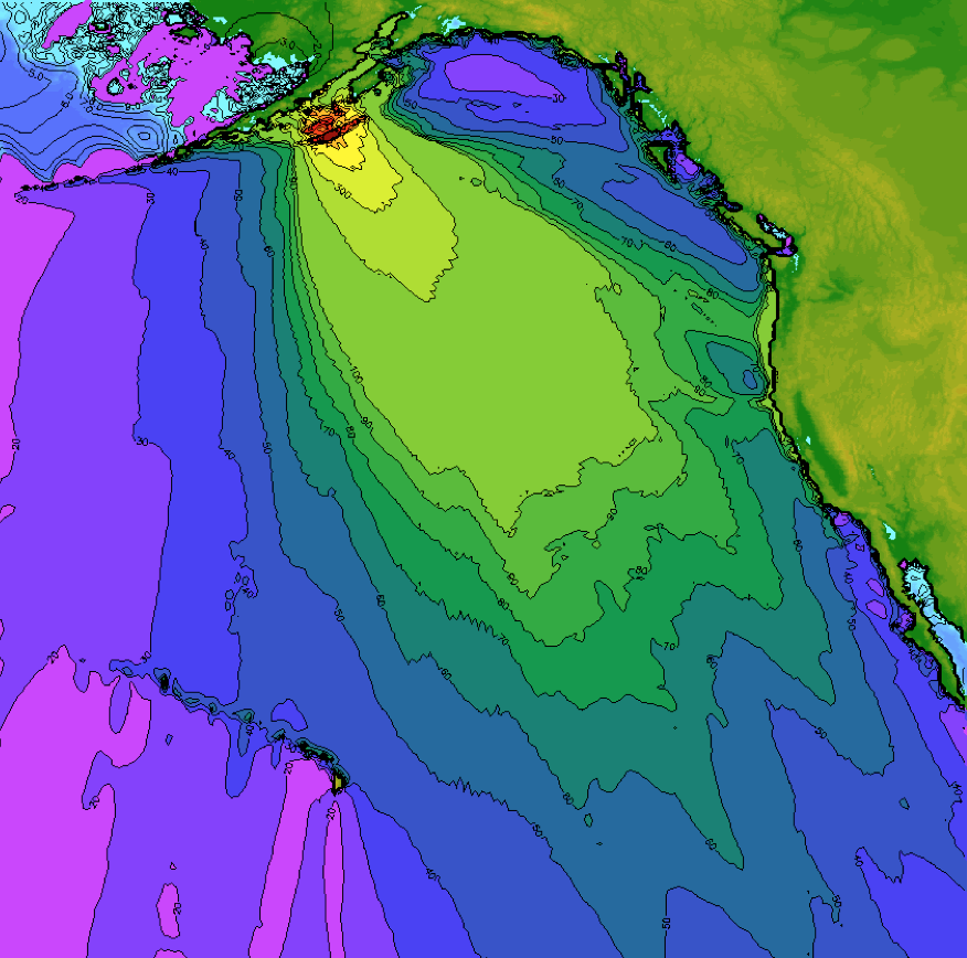 Wave height image for the Tsunami scenario described in the fact sheet: http://pubs.usgs.gov/fs/2013/3081/
