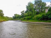 View from USGS 06174500 streamgage in late summer looking at the Milk River