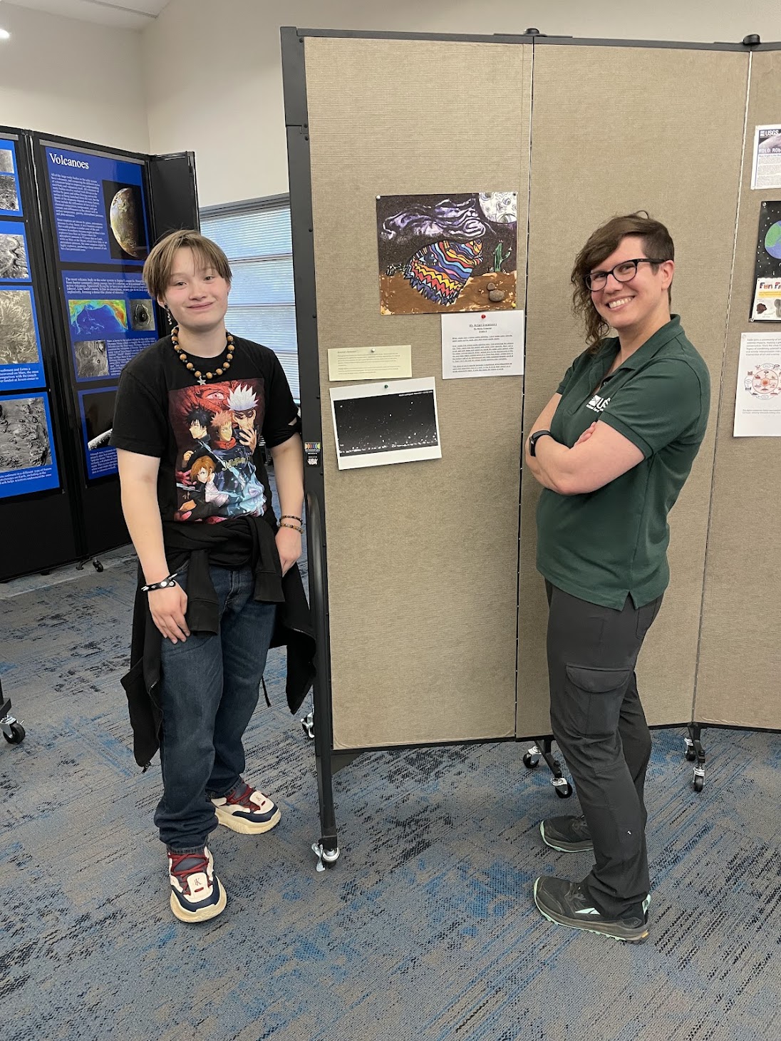 Art of Inquiry exhibit at USGS Flagstaff Science Campus on Sept 22, 2025 featured artwork by students from Flagstaff Arts and Leadership Academy that was inspired by research and 1:1 collaboration with USGS scientists.