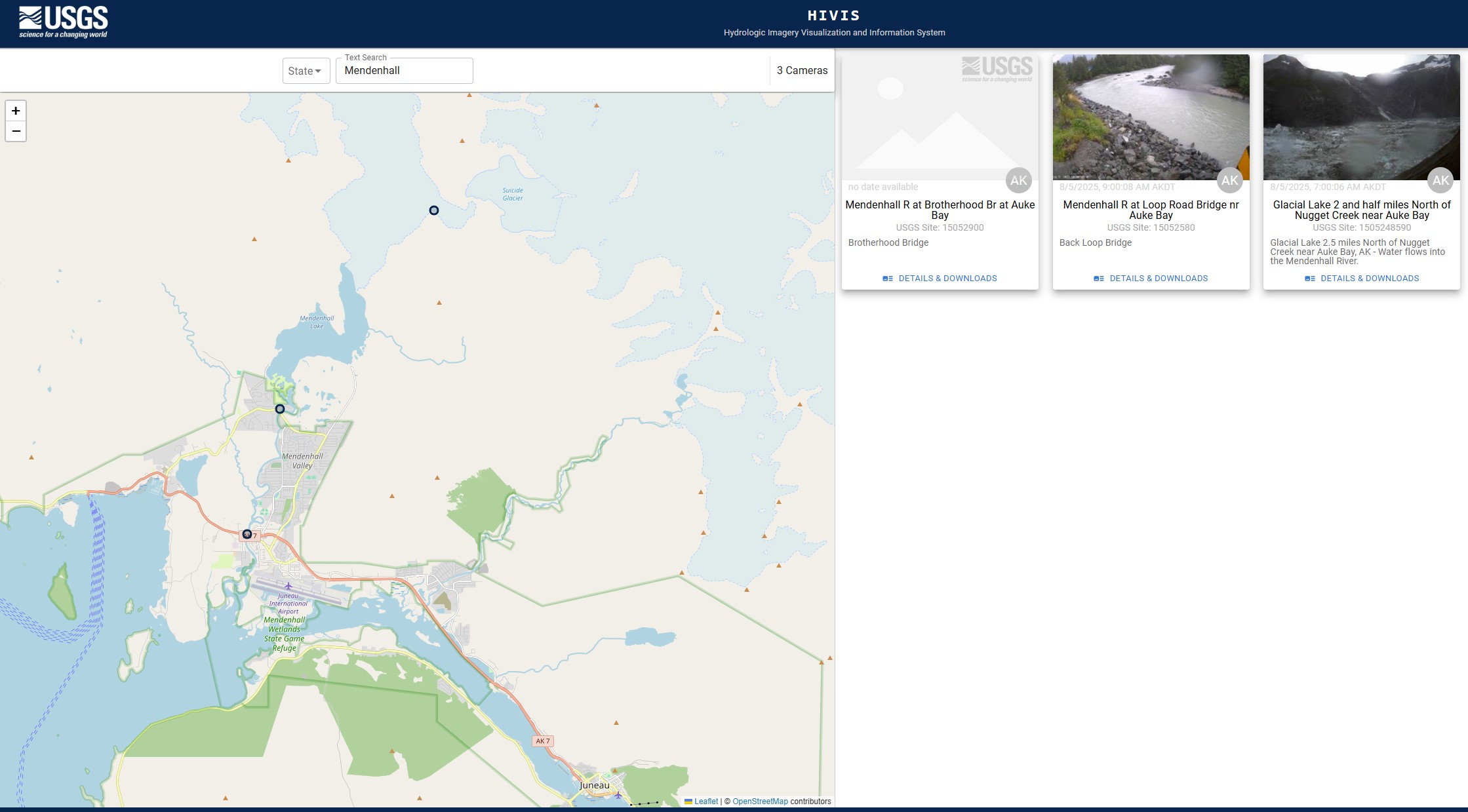 Screenshot of USGS HIVIS page for Mendenhall Glacier.