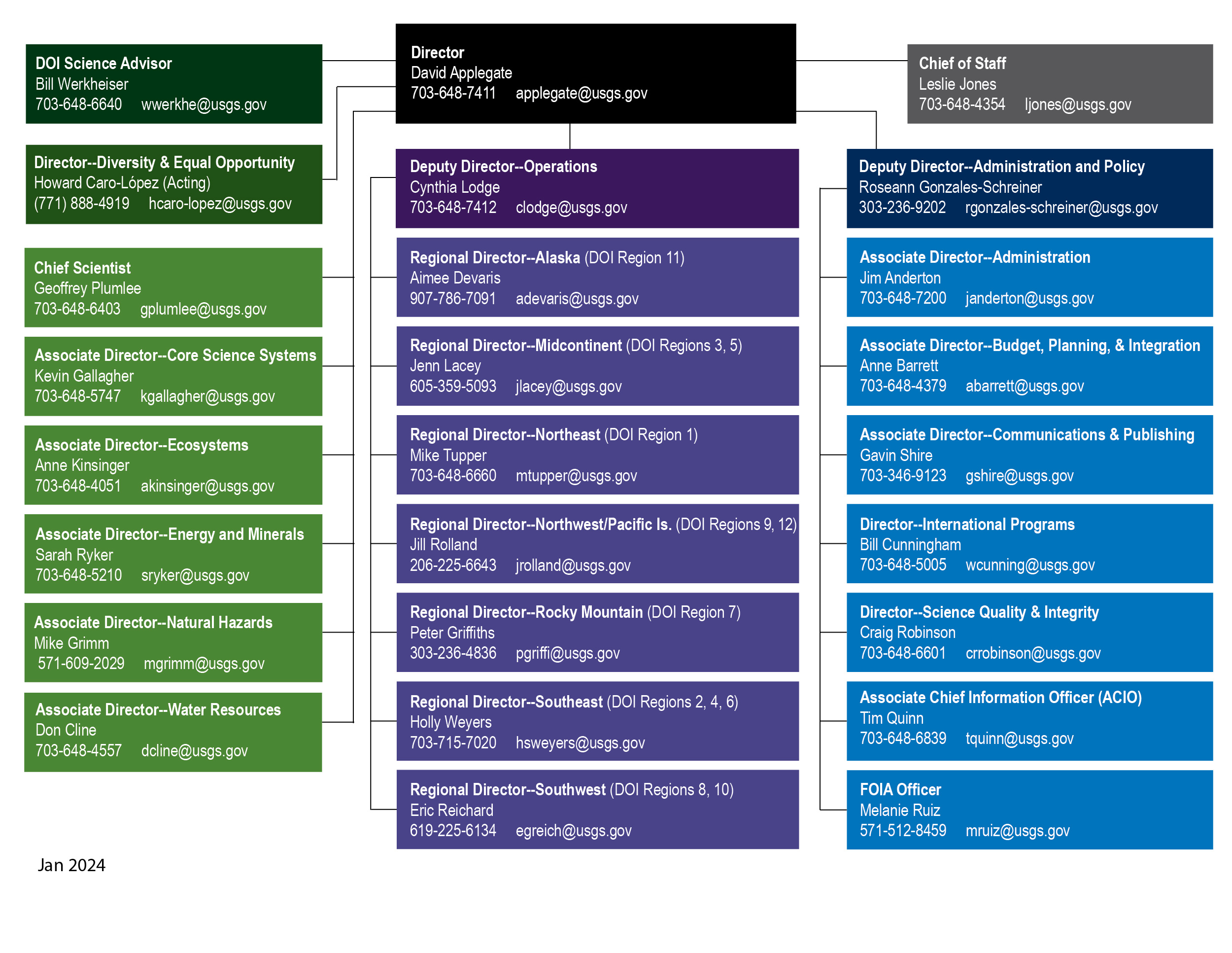 Visit: https://www.usgs.gov/about/key-officials for more details, bios, and information for these key officials listed within this organizational chart.