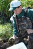 USGS Scientist Randy Hines with rock full of zebra mussels
