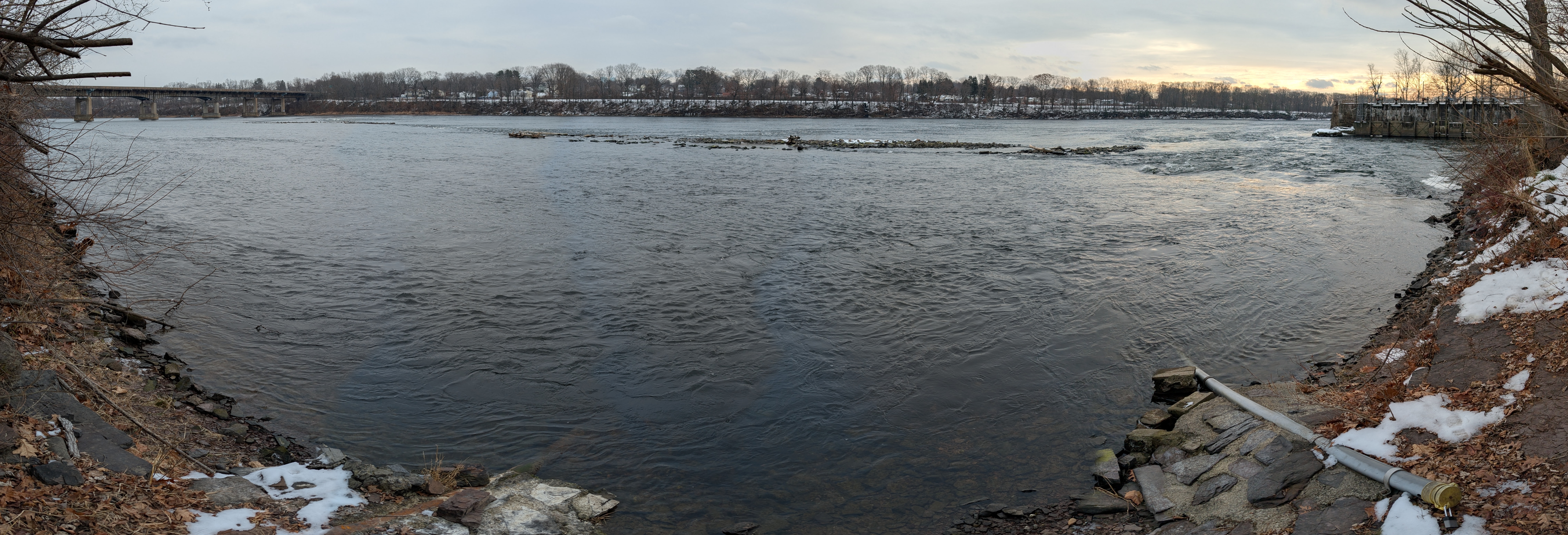 A view looking across the Connecticut River from a USGS streamgage in Suffield, Connecticut.