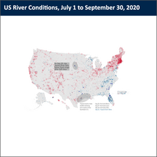 Water data visualization showing U.S. river conditions from July to September 2020.