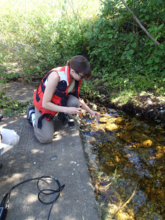 Water-quality sampling at Box Culvert spring, Texas.