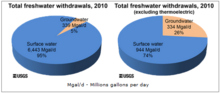 Total surface-water and groundwater withdrawals (for total withdrawals and total withdrawals without thermoelectric power withdrawals) for South Carolina, 2010.