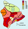 The island of Hawaii is divided into zones according to the degree of hazard from lava flows. Zone 1 is the area of the greatest hazard, Zone 9 of the least.