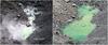 These images look east at the pond within Halema‘uma‘u on August 8 and 14, 2019. The pond widened mainly toward the south (right). The north-south width of the pond on August 14 was about 32 m (105 ft), about 10 m (35 ft) wider than on August 8. The pond has widened and deepened slowly and steadily rate since measurements began on August 3. USGS photos by D. Swanson.