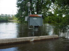 Flooding at streamflow-gaging station on the Whippany River near Pine Brook, NJ (U.S. Geological Survey station 01381800), after the peak on August 19, 2011.