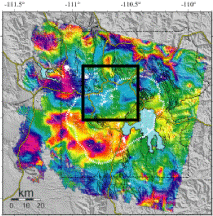 Yellowstone caldera 2002-2003 InSAR image, no uplift (black box).