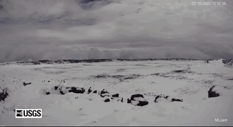 Stormy weather moved through the islands over the past day, producing snow at the higher elevations of Mauna Kea and Mauna Loa. This sequence shows the webcam images at the summit of Mauna Loa, and the variable weather throughout the day.